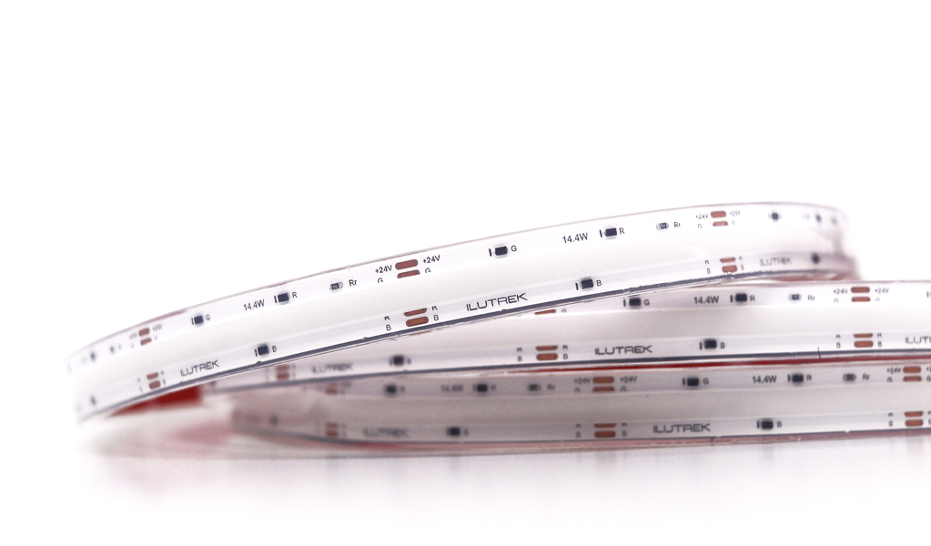 La nueva tira LED DOB RGB IP68 de ILUTREK ofrece todo el potencial del color con la máxima resistencia para exteriores. Fabricada en silicona extruida con protección IP68, está diseñada para soportar agua, humedad y condiciones ambientales exigentes, sin renunciar a un acabado estético y discreto incluso apagada.